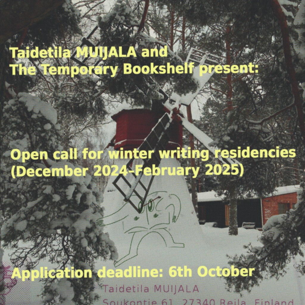 The applications will be evaluated by a committee from members of Taidetila Muijala and The Temporary Bookshelf. The winter writing residencies ’24 – ’25 is our first collaboration and aims to be a fertile ground for further collaborations including publication projects and literary events.