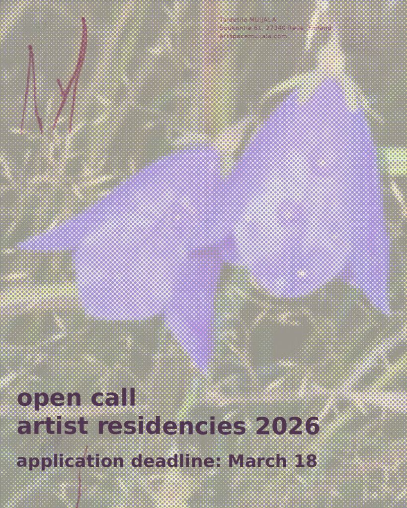 how to apply: To apply send us a free-form motivation or work plan, portfolio (or link to website) & cv to artspacemuijala@gmail.com